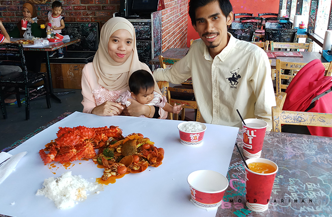 Kalau bercakap pasal mengidam, selagi tidak dapat apa yang diidamkan memang buat kita terfikir-fikir. Ceritanya, isteri mengidam hendak rasa King Crab. Sebenarnya sudah lama mengidam tetapi apakan daya, harga King Crab ni mahal. Sejak mengandungkan puteri kesayangan dan puteri kesayangan kini sudah 6 bulan baru dapat merasainya. Jadi sempena hari lahir isteri beberapa hari lepas, aku bawa isteri makan King Crab.