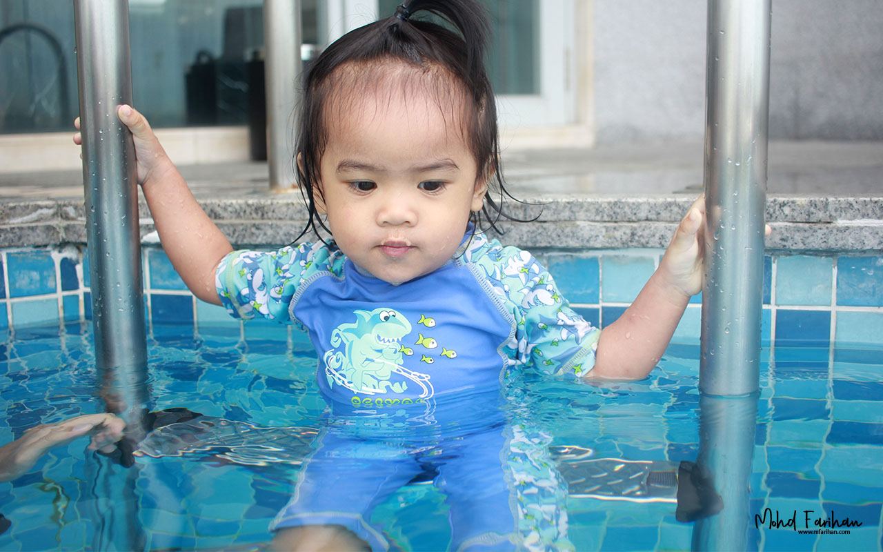 Semasa lepak petang tu, kami makan-makan. Karipap di sana 3 biji berharga RM7. Air kelapa RM10 sebiji. Biasalah, 5-stars resort. Geng ofis sempat bermain banana bot. Sebenarnya banyak aktiviti boleh dilakukan kat sini. Aku tidak turut serta sebab niat datang sini sebenarnya nak bagi puteri kesayangan mandi kolam. kah kah kah!