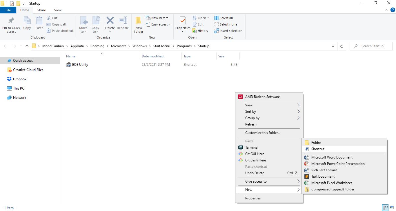 Langkah seterusnya adalah buka folder Startup dengan cara tekan Windows logo key + R, taip shell:startup, dan klik OK.
